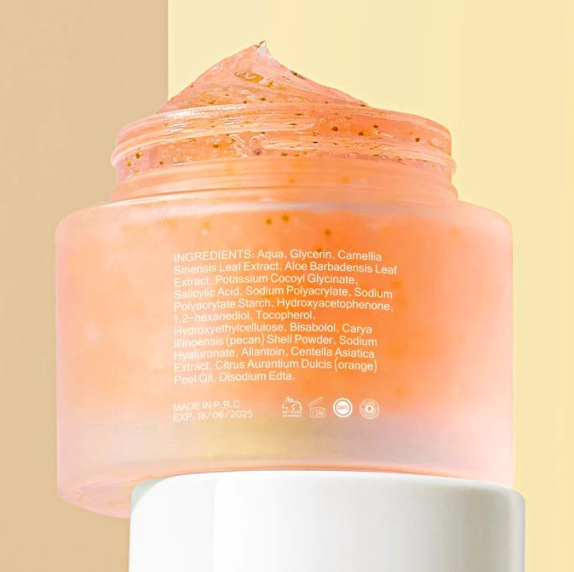Key ingredients are salicylic acid, glycolic acid and sugar get the benefits of the mechanical scrub from the sugar along with chemical exfoliation the ultimate product.